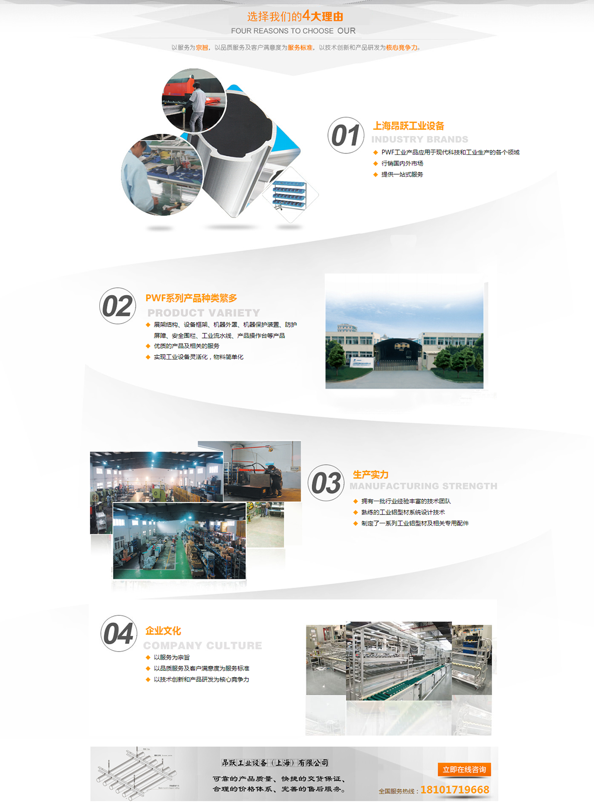 昂躍工業(yè)(上海)有限公司于2012年成立以來,我們秉承以服務(wù)為宗旨,以品質(zhì)、服務(wù)及客戶滿意度為服務(wù)標準,以技術(shù)創(chuàng)新和產(chǎn)品研發(fā)為核心競爭力。從產(chǎn)品的模具設(shè)計研發(fā)到擠壓生產(chǎn),從產(chǎn)品精加工到表面處理,從簡單的鋁型材框架加工到全自動流水線裝置系統(tǒng)化制造,我們以曾經(jīng)和正在為各行業(yè)翹楚公司提供產(chǎn)品和服務(wù)為驕傲!